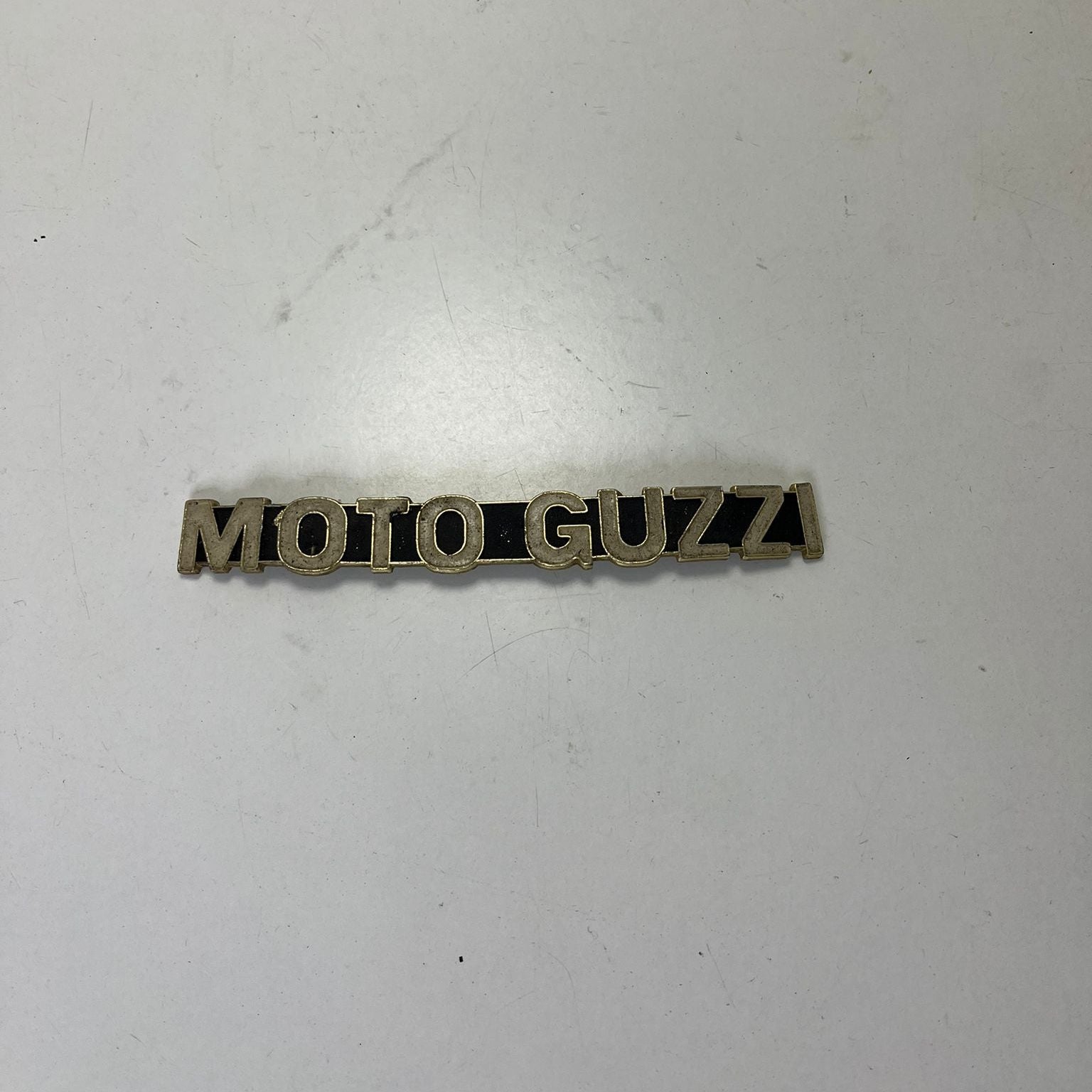 TARGHETTA EMBLEMA "MOTO GUZZI" IN ALLUMINIO USATO PICCOLA
